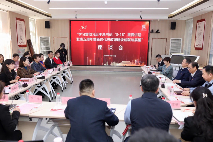 3月15日,西安音乐学院组织召开“学习贯彻习近平总书记‘3·18’重要讲话精神暨新时代思政课建设成就与展望”座谈会。校党委书记张立杰,副院长仲廷虎、郭强,西北大学马克思主义学院王永智教授出席会议。校党委副书记、纪委书记易红彬主持座谈会。