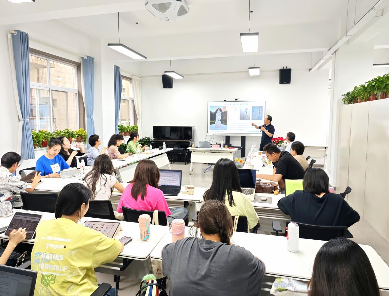 讲座最后,人文学院申小龙、闫赵玉等青年教师与高字民老师进行了互动交流。通过本场讲座,师生们更深刻地理解戏剧美育在塑造审美情趣和文化自信中的作用。同时,高字民老师丰富的实践经验和理论洞察,为学院美育课程的设计和教学方法的创新提供了宝贵的参考,为今后美育工作的持续发展注入了新的活力。