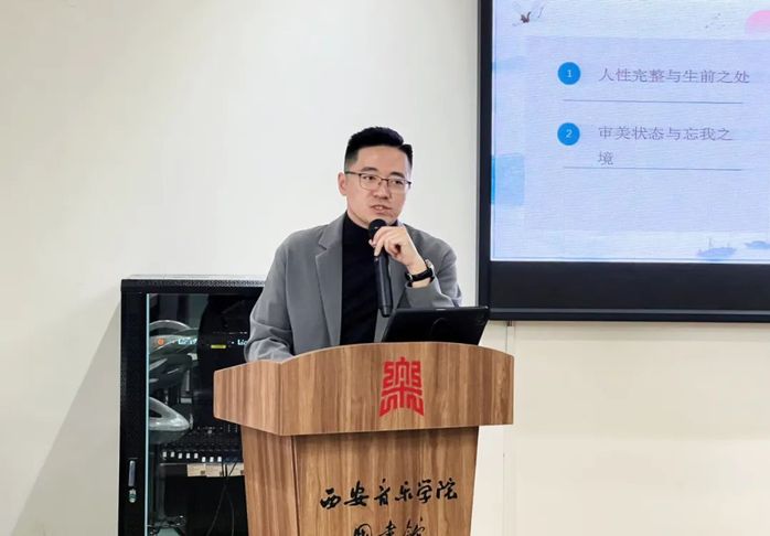 音乐教育学院袁建军博士以《周敦颐“淡和”音乐观再识——兼谈“淡和”在近古的流变》为题,以“再谈”周敦颐“淡和”音乐美学观首场开讲。讲座在“淡和”的含义阐释中引用了周敦颐著作《太极图说》、《通书》等文献资料,分别对“淡和”音乐思想的逻辑、内涵、动因等逐一辨析,并认为“淡和”音乐观的落脚点在人心教化,伦理道德修为,这是其成圣成贤的根本。讲座紧抓周敦颐的“淡和”思想,展示其在中国音乐思想史上的重要地位及其深远影响。在“淡和”的流变部分,袁博士分别以明代徐上瀛、清代汪绂为例,阐释了各自“淡和”观的内涵与特色,从长时段的视角揭示了“淡和”音乐审美观的演进历史,勾勒出“淡和”审美观在近古时期的嬗变轨迹。