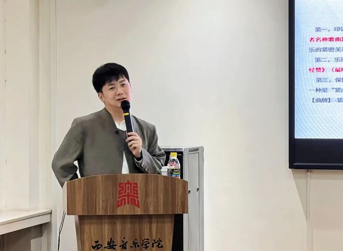 胡东辉博士通过国家“非遗”名录洋县佛教音乐的历史渊源、传承体系、物质构成以及艺术特征与学术价值展开讲解,讲座中特别强调了资料挖掘的重要性,具体从《诸佛世尊如来菩萨尊者名称歌曲》入手,以《民族民间器乐曲集成•陕西卷》《汉中民间器乐曲集》《梵音经赞》等为据,对洋县境内智果寺所藏的明代善本经书中的佛曲展开论述,其中有《三皈赞》《东方赞》《菩萨扫殿》等经韵乐;《粉红莲》《放牛娃》等鼓吹乐;《三瑕鼓》《起幕鼓》《七拍》《四大景》等锣鼓乐。从理论到实践,胡东辉以田野调查所感而谈,让聆听者在丰富的资料之中对洋县佛教音乐的历史及传承有了相关认识,旨在探索非物质文化遗产的研究价值,引发了“非遗”传承与发展的进一步思考。