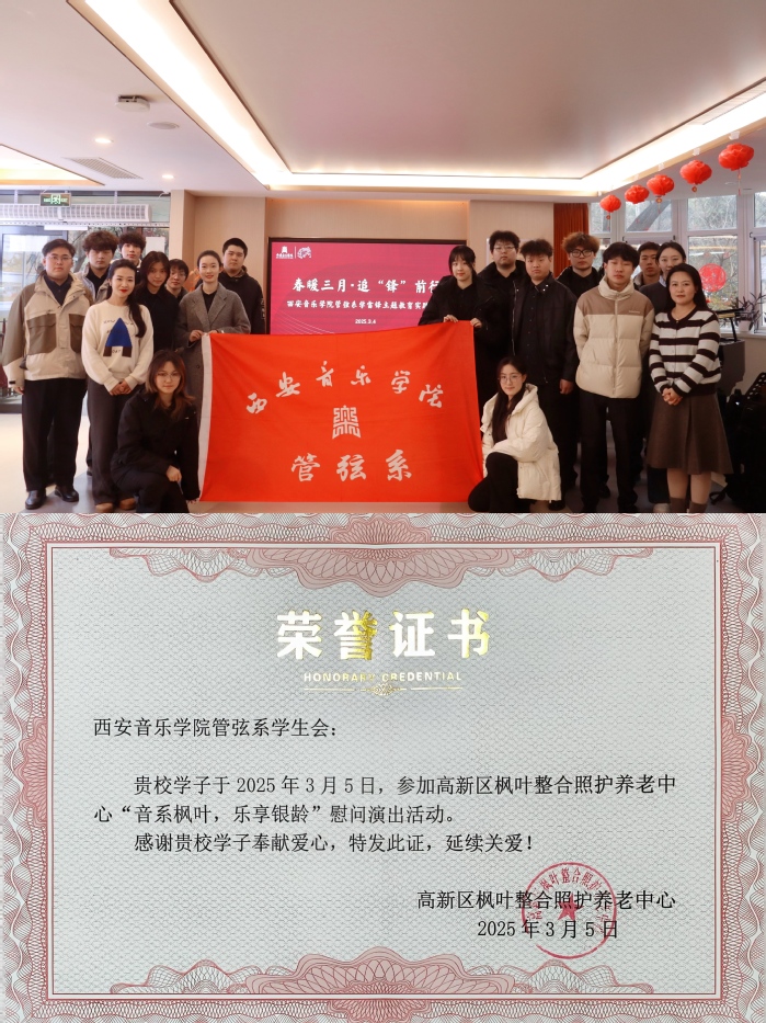 三月春风暖,追“锋”正当时。3月4日下午,管弦系组织学生志愿者前往高新区枫叶整合照护养老中心,开展“春暖三月・追‘锋’前行”——管弦系学雷锋主题教育实践活动。