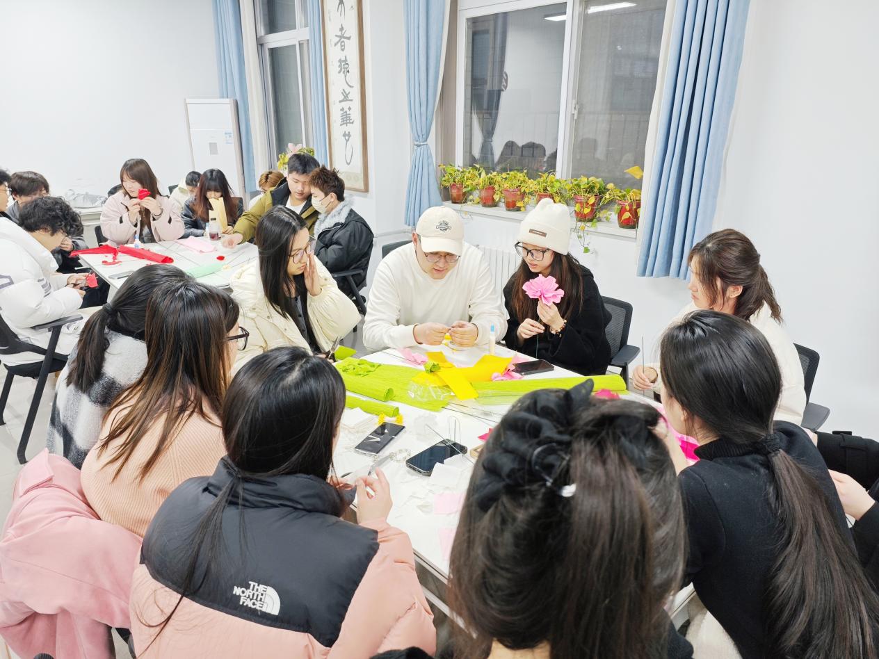 在这个特别的节日里,手工纸艺花成为了情感的纽带,将师生们的心紧紧相连。师生们将平凡的纸张幻化为栩栩如生的花朵,娇艳的“玫瑰”、温暖的“康乃馨”、灿烂的“向日葵”……每一朵纸艺花都承载着独特的创意与情感。在欢声笑语中,师生们相互交流、相互帮助,用双手编织出一朵朵纸艺花,用指尖的温度传递着人文的温暖与力量。