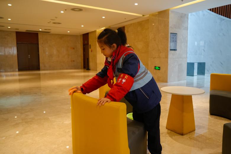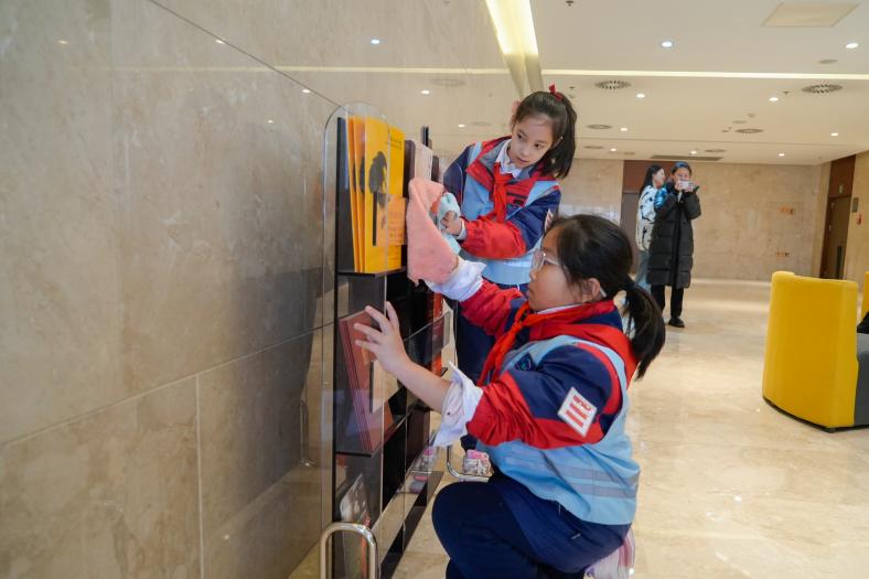 随后,师生们在艺术中心工作人员的指导下,对歌剧舞剧厅的座椅以及西门前厅区域的沙发进行了清洁维护。大家分工协作,认真擦拭每一张座椅,用实际行动践行雷锋精神。