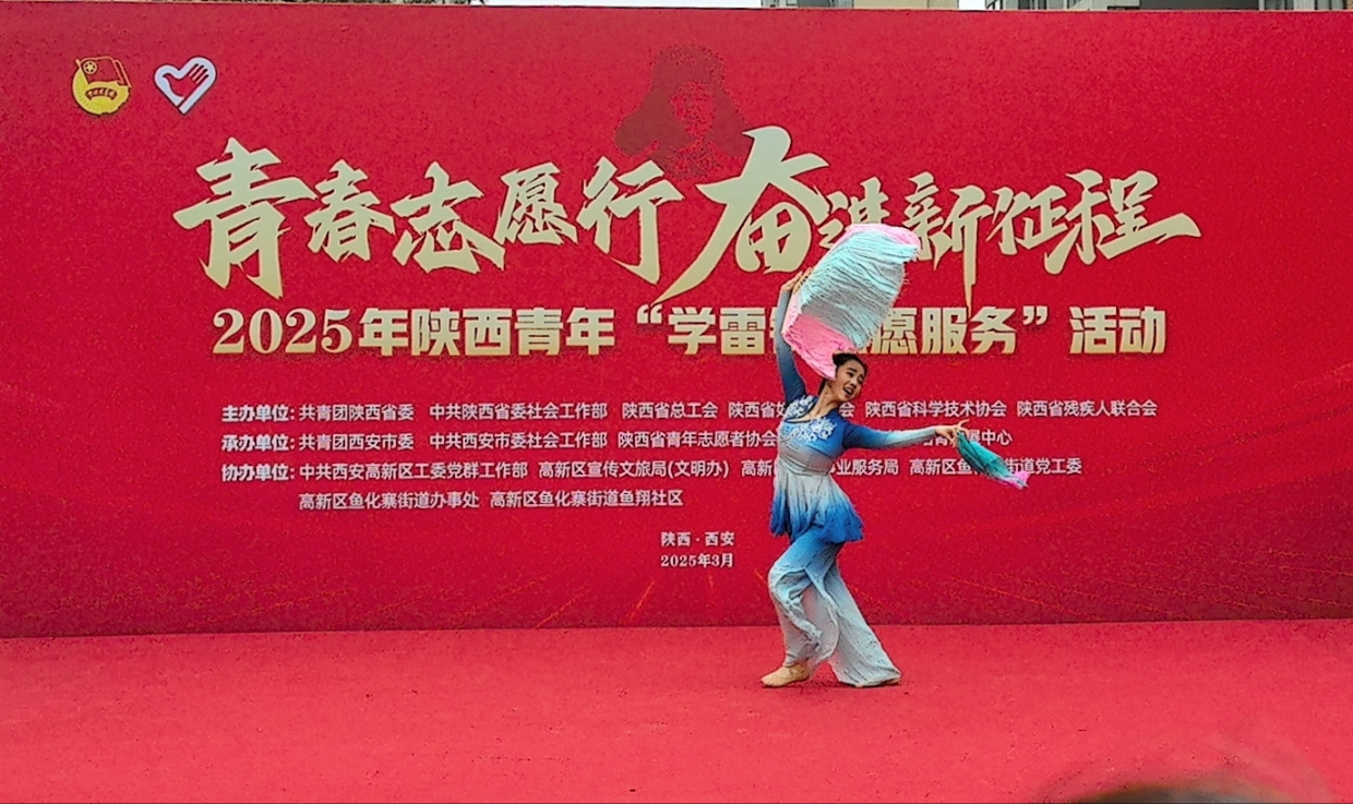 在第62个“学雷锋纪念日”到来之际,在团省委、校团委的号召下,舞蹈学院积极组织17名青年志愿者走进西安市高新区鱼翔社区,开展“关爱传温暖,舞韵青春行”志愿服务活动。以艺术之美传递温暖,以青春行动诠释新时代雷锋精神。