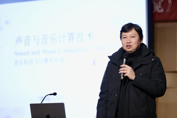 李伟教授首先介绍了音乐科技的发展历程,特别是数字音乐从90年代中后期的midi音乐发展到近年来人工智能音乐生成的过程。他表示,音乐与计算机的融合是涉及音乐学、音乐表演、音乐创作以及音乐教育等多个领域的新型跨学科研究方向。