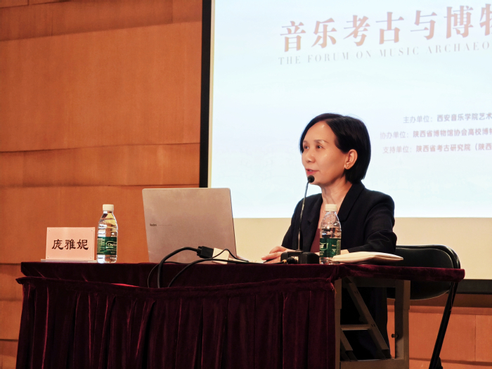西北民族音乐研究中心王安潮教授以《陕西音乐考古史料类型的历史特征研究》为题,展开本届“音乐考古与博物馆学论坛”的第一讲。他以音乐文物与历史文献比较分析的形式,从宏观与微观的维度,对远古、周代、秦汉、魏晋、隋唐、宋元、明清等不同时期的音乐文物的类型及其特征进行辨析,尤其指出周、汉、唐时的音乐文物在量上的广大与宏富、个性与气度的历史渊源,在代表性音乐文物分析基础上,进而指出陕西音乐文物在地域文化中的历时性特点。