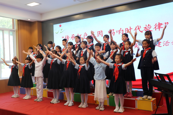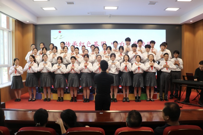 6月12日上午,在习近平总书记给照金北梁红军小学学生回信七周年之际,附中80余师生来到照金北梁红军小学,举办了主题为“传承红色基因 唱响时代旋律”美育联建活动。活动通过合唱与朗诵相结合的方式开展,无论是西音附中少年合唱团《期待的远方》《红星歌》的优美和声,还是北梁红军小学合唱团《少年军号哒哒响》《如愿》的纯美质朴童声,都为本次红色音乐美育赋予了青春温度,也为两校携手唱响时代新声,传承弘扬红色基因奠定主题基调。