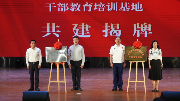 6月11日晚,由西音附中与陕西照金干部学院携手打造的“唱支山歌给党听”音乐党课与美育教学展示专场音乐会在照金干部学院隆重举行。铜川市委常委、市委组织部部长,陕西照金干部学院党委书记、院长王廷栋;西安音乐学院副院长侯颉等出席活动。在干部学院参训的云南省弥勒市委组织部、中国飞行试验研究院、西安市消防救援支队等500名培训学员参加了本次活动。活动开始前,西安音乐学院美育中心副主任高贺杰,代表美育中心与干部学院进行了“照金红色音乐美育基地”共建揭牌。