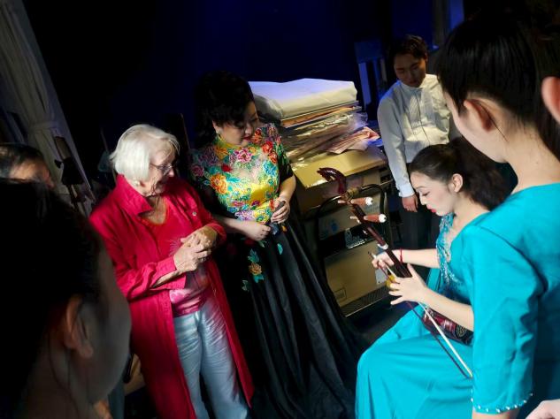 中场休息期间,维也纳当地的小提琴演奏家们对我们的传统乐器二胡表现出了极大的兴趣,与我校师生一起进行了短暂且富有深度的交流。