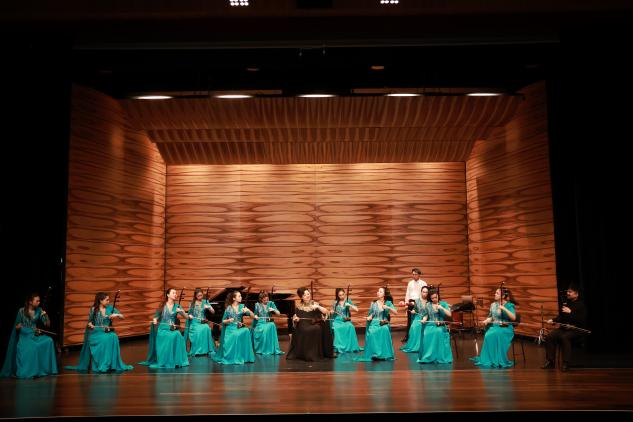 下半场,第一首曲目《流浪者之歌》由2017级本科生陈怡达演奏,以中国民族乐器演绎西方经典曲目,为在场的观众带来了中西融合的新奇体验。《唐·舞马耀长安》作为世界首演,则将观众们带到我们美丽的长安,以陕西历史博物馆的文物“鎏金舞马衔杯纹银壶”为创作灵感,为观众展示了千年前那个让人敬仰且如痴如醉的繁华盛唐。之后,一曲《阳光照耀着塔什库尔干》又带领观众来到了美丽的新疆,悠扬的曲调,轻快的节奏展现了新疆人民能歌善舞的民族文化。最后,一曲《赛马》瞬间点燃全场,大草原万马奔腾的场面映入眼帘,现场的掌声绵延不绝。