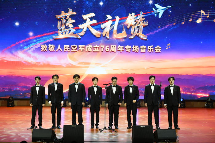 演出在全场齐声高唱《歌唱祖国》的热烈气氛中圆满落幕,掌声经久不息,表达了全体观众对人民空军76载光辉历程的崇高敬意。
