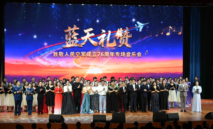 11月5日晚,西安音乐学院在空军西安飞行学院礼堂隆重举行“蓝天礼赞”——致敬人民空军建军76周年专场音乐会。空军西安飞行学院主要领导和西安音乐学院院长王刚出席晚会,与官兵、师生共同观看演出。