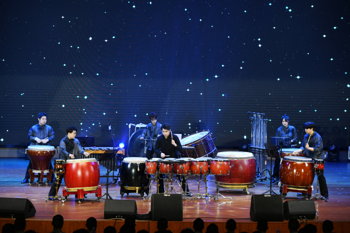 音乐会在飞行学院官兵表演的鼓乐群舞《破阵》中震撼开场,激昂的鼓点与雄健的舞姿,展现出人民空军向战而行的昂扬斗志。