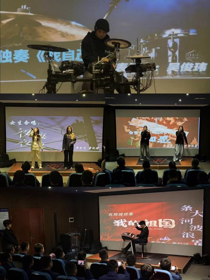 参观结束后,同学们为消防员献上文艺慰问演出。节目涵盖爵士鼓、合唱、双排键等多种形式,现场气氛融洽,展现了团组织的活力与温度,拉进了与消防战士的距离。