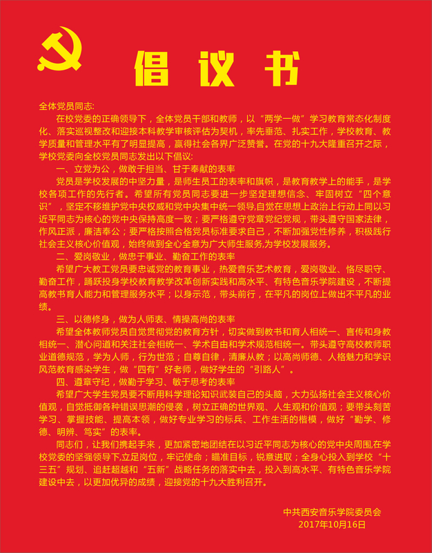 【喜迎十九大】倡议书