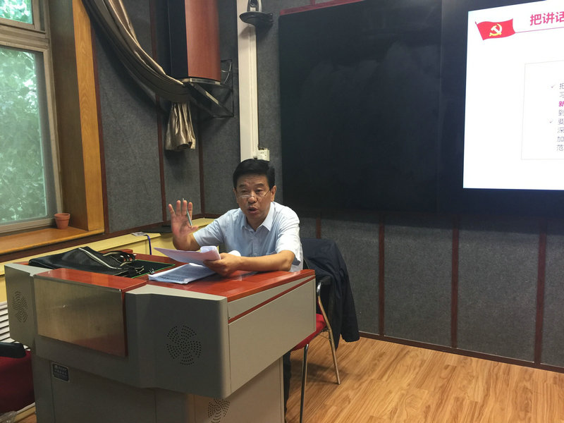 2017年9月14日,学工部部长张津波为学工部支部全体党员讲授“切实推动高校思想政治工作创新发展结合