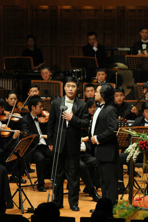作为本届音乐节的开幕音乐会,为纪念全本《黄河大合唱》复排35周年,由我院合唱团、北京交响乐团、著名指挥家谭利华以及著名女高音歌唱家么红、著名男中音歌唱家袁晨野等各方强强联合,共同演绎了这部影响中国60年的史诗之作——《黄河大合唱》。这场大型交响合唱音乐会,以百人交响乐团和百人合唱团创下了陕西·西安国际音乐节有史以来演出规模最大的纪录。
