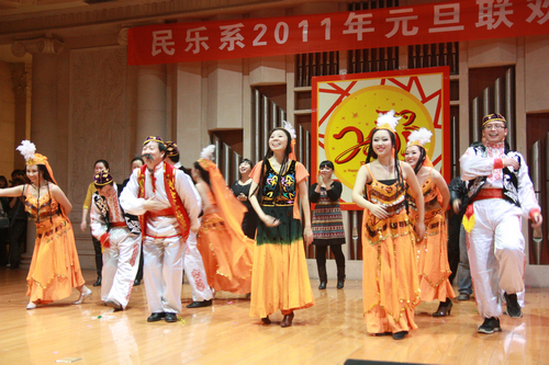 精彩文艺演出在节日之夜为现场观众带来了一场丰盛的视觉盛宴。激情的演员、热情的观众将会场的气氛一次次的推向高潮,那透彻心底的欢腾喜悦感染着每位嘉宾和观众。告别2010,喜迎2011,相信在美好的未来,民乐系全体师生会团结一心共创佳绩。