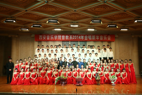 2013年12月29日,音教系举办了2014年合唱新年音乐会。上半场曲目有《生活就是舞台》、《甜蜜蜜》、《不朽》和《Sinoreta》;下半场曲目包括《我像雪花天上来》、《三十里铺》(作曲:冯毅)和《永远的长安》(作曲:黄冰漫);最后,音乐会在《旗帜颂》中结束。