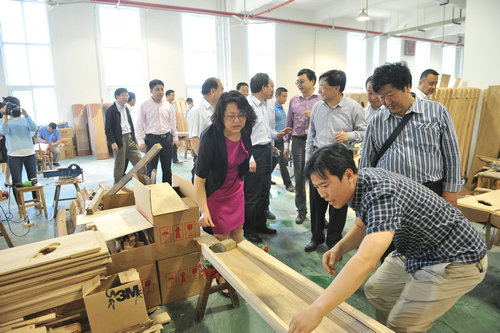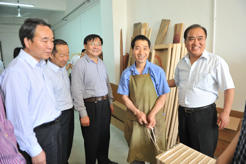 近日,我院乐器厂正式落户临潼新区,并顺利投入生产。2014年5月21日,党委书记李映方,党委副书记、常务副院长孙卫国,副院长白陆平、王真,临潼区常务副区长王海成,区委常委吴立民,副区长邹林以及我院和临潼区相关部门负责人,视察了乐器厂新厂区基础设施建设、企业生产和职工生活情况。