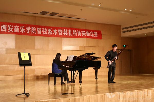 ——首届木管莫扎特协奏曲比赛。2015年4月7日至9日,西安音乐学院举办首届木管莫扎特协奏曲比赛和学术研讨会。 比赛预选对象为该院管弦系所有在校学生,共有70余名学生报名参赛。进过一天的预赛,确定了14名决赛选手。 决赛中,为了保证比赛的严肃性和公平性,决赛评委由该院知名专家教授和外籍教授组成。通过紧张激烈的比赛,产生一等奖1名,二等奖2名,三等奖3名,优秀奖6名。 学术研讨会上,与会教师结合本次比赛情况,着重从培养目标、教学问题和具体方法等方面进行了深入的探讨发言,找准了木管专业在教学上存的问题,也研究出了具体改进措施,为木管专业的建设和发展探明了方面,确定了道路。