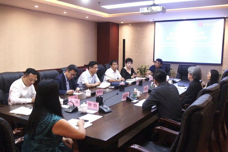 座谈会上,冯力斌、李宝杰向来访嘉宾表示欢迎,李宝杰从我校建校历史、办学特色、人才培养、学科建设、对外交流与合作等方面进行了介绍。李宝杰强调,我校非常重视与南洋艺术学院在教学、艺术实践、学术研究以及师生互换等方面的交流合作,希望通过此次来访为两校在人才联合培养、合作办学等领域的实质性合作打开一个良好的开局。
