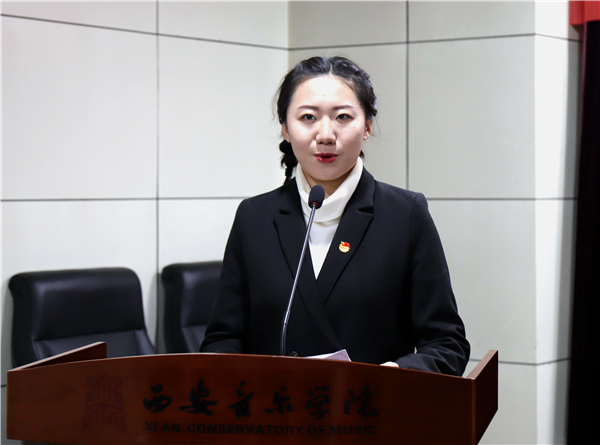 开班仪式上,参会人员齐唱共青团团歌《光荣啊!中国共青团》。会上宣传(统战)部负责人梁成山宣读了《关于举办西安音乐学院2020年“青年马克思主义者培养工程”大学生骨干培养学校第九期培训班的通知》,学员代表声乐系2018级学生曾繁娇发言。