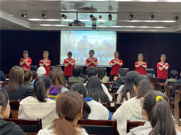 随后,舞蹈系和声乐系学生代表分别演绎了手语操《明天会更好》和朗诵《献给可爱的守护者》。