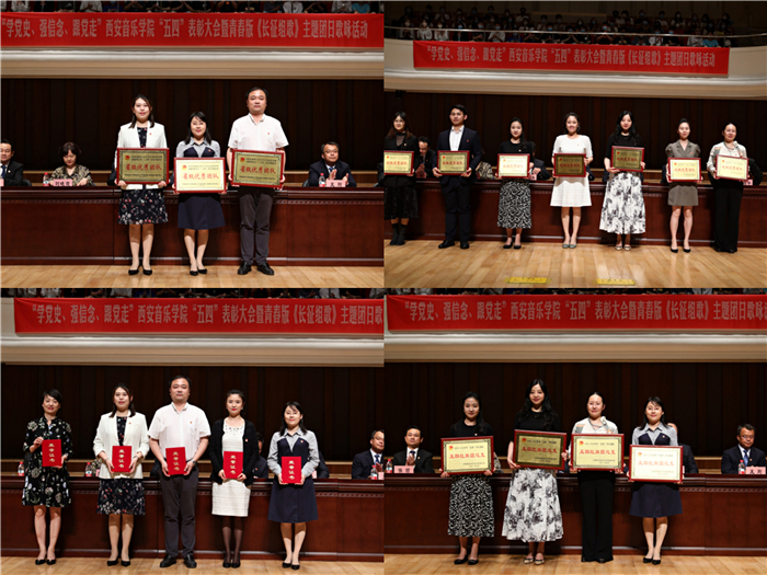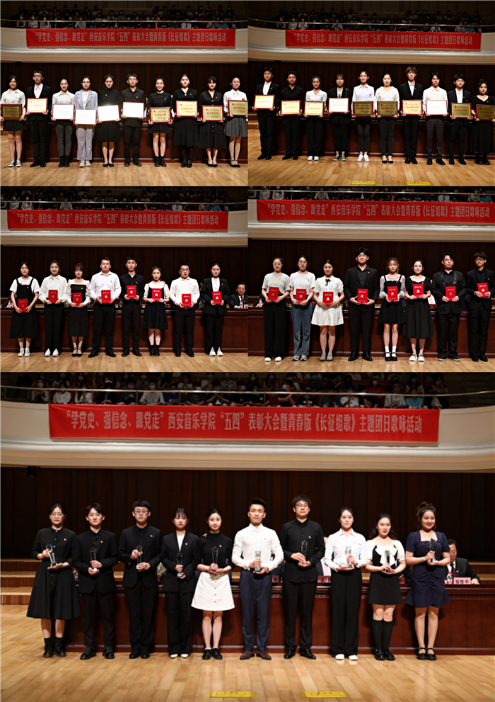 表彰大会在雄浑激昂的国歌声中拉开序幕。党委副书记李宝杰宣读了《关于表彰2020年西安音乐学院大学生暑期“三下乡”社会实践活动“优秀团队”“优秀指导教师”“先进个人”的决定》、副院长强陆平宣读了《关于表彰2020—2021学年“五四红旗团总支”、“先进团支部”“优秀共青团员”“优秀团干部”的决定》。随后,校领导依次为本学年共青团工作中表现突出的先进集体代表和先进个人颁奖。优秀团员代表声乐系何炳昱、团总支书记代表民乐系团总支书记郭雯分别作了发言。