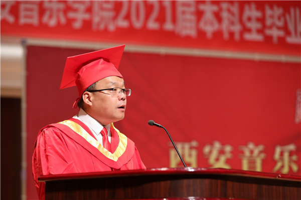 音乐教育学院院长李小琪教授代表教师发言,希望毕业生能够牢记“明德教化乐音至善”的校训,心系梦归处、不负韶华年,怀揣对音乐艺术的热爱,用最美的音符照亮人生,在未来的舞台上奏响新的华彩乐章。
