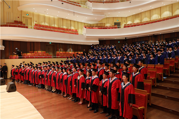 校学位评定委员会主任、院长王真和与会校领导为全体毕业研究生颁发毕业证书并拨穗。