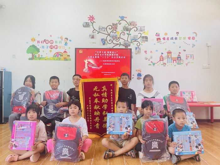 此次社会实践活动,发扬了同学们脚踏实地、艰苦奋斗的精神,并潜移默化激发了学生感受美、欣赏美、创造美的能力,让她们了解到舞蹈不止是技艺,更多的是对文化的深层理解。陕西渭南市三张镇油王小学向我校赠送了“真情助学弘美德 无私奉献映丹青”的锦旗,对同学们的付出表示感谢。