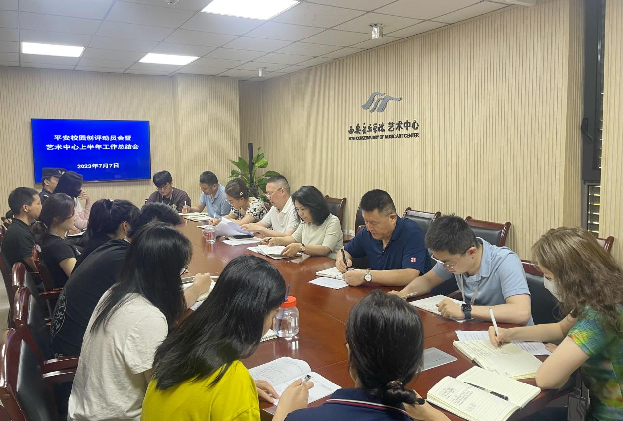 2023年7月7日上午,艺术中心召开“平安校园”创评动员会暨上半年工作总结会,中心全体员工参加。会议由艺术中心主任刘宝玲主持。
