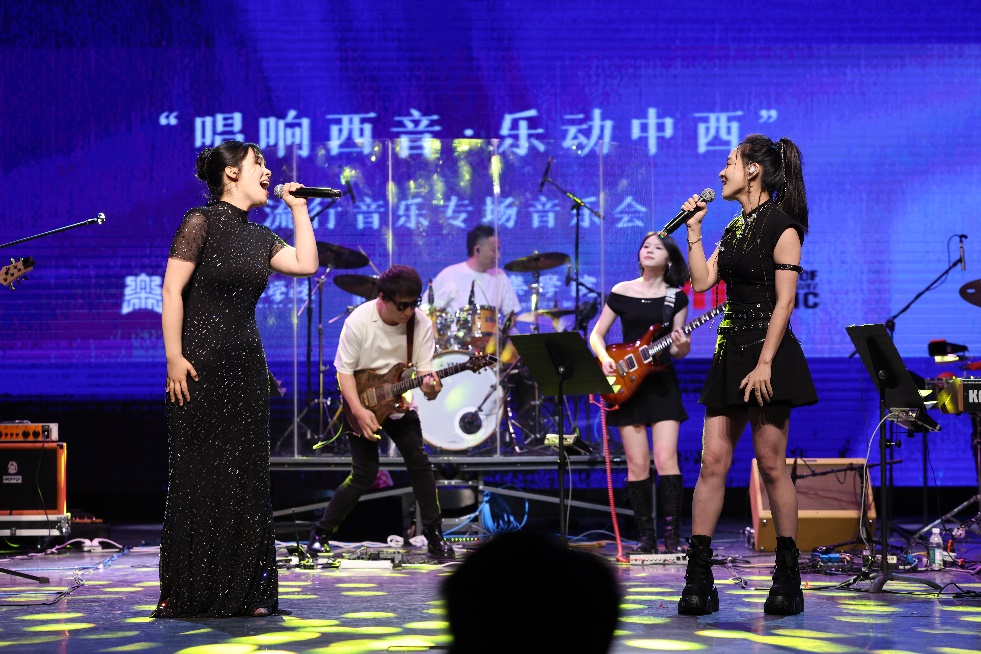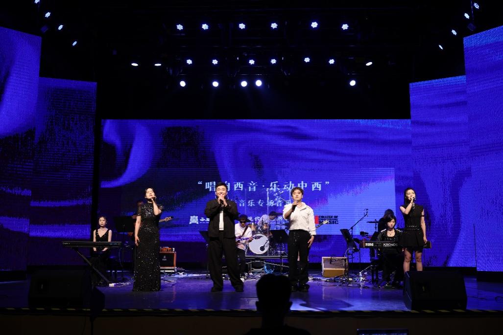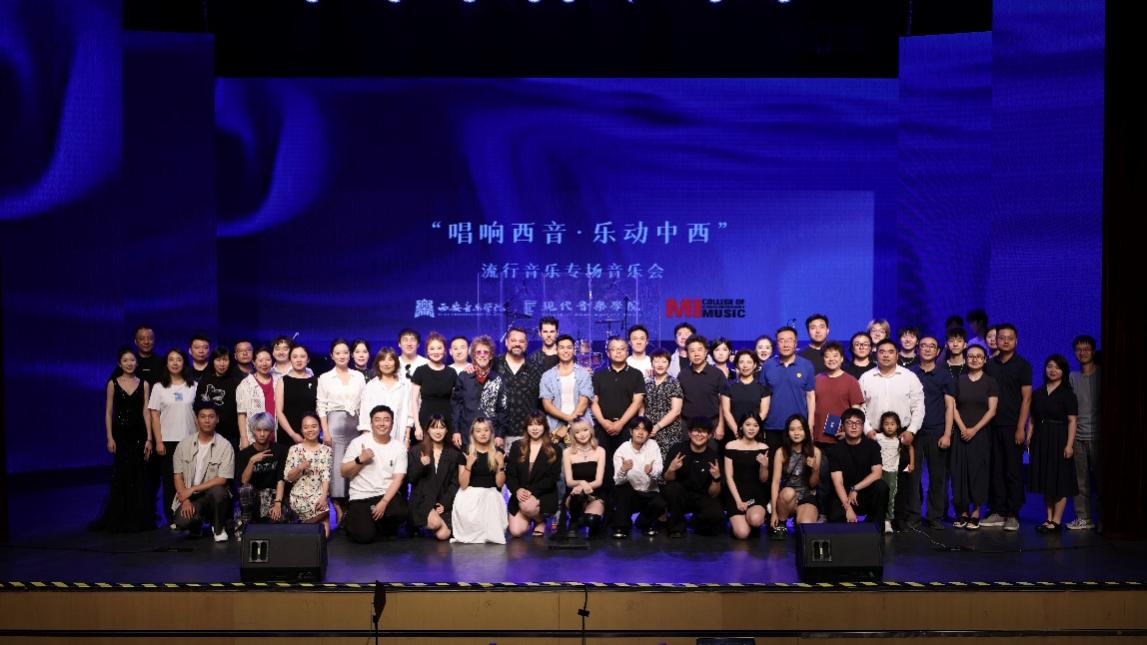 当晚,我校第三届艺术实践展演月闭幕式演出——“唱响西音·乐动中西 2025”流行音乐专场音乐会在艺术中心歌剧舞剧厅成功举办。本场音乐会由现代音乐学院师生与美国MI现代音乐学院教师乐队联袂出演。音乐会高潮迭起,中西音乐文化在这里碰撞、交融,绽放出绚丽的火花。300余名师生沉浸在这场当代音乐的盛宴中,现场掌声雷动,为本次音乐交流活动画上了一个圆满而精彩的句号。