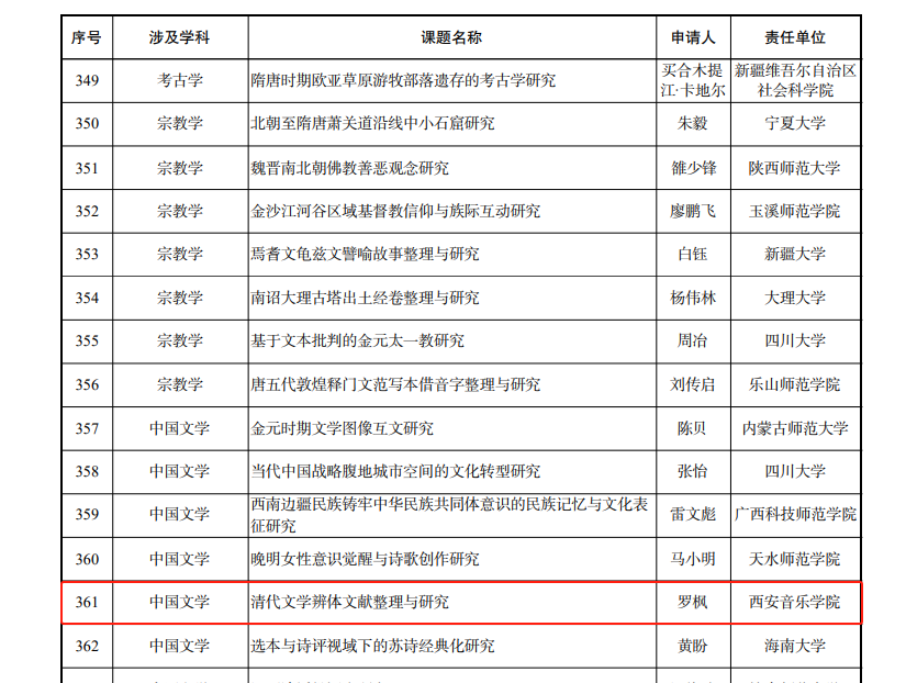 9月5日,全国哲学社会科学工作办公室公布了《2025年国家社会科学基金年度项目立项名单》。由我校人文学院青年教师罗枫负责的《清代文学辨体文献整理与研究》成功获批立项。这是继今年我校获国家社会科学基金重大项目立项以来,再次获批西部项目。