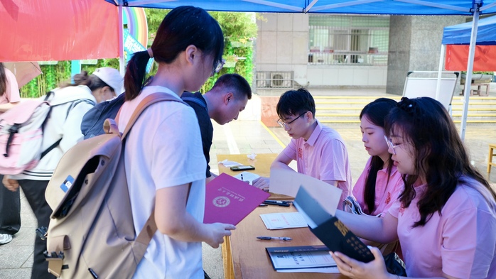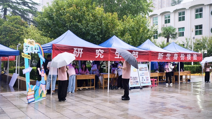 为提升报到效率与体验,研究生部提前谋划,协同各职能部门优化流程,推出“一站式”报到服务。信息核验、材料收取、银行卡与校园网办理等环节集中设置、高效衔接。即便细雨绵绵,现场依然秩序井然。