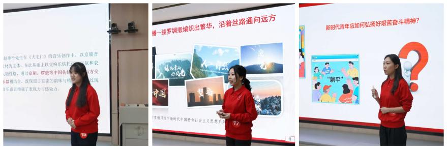 决赛现场气氛热烈,选手们紧扣思政课核心内容,围绕新时代伟大变革、中华优秀传统文化传承、红色精神谱系等重大主题,创造性地将音乐理论与艺术实践融入课程讲授。从“马克思主义告诉你音乐里的‘红色密码’”,到“舞转千年文脉,绽放青春风华”,再到“弘扬延安精神,用艺术践行为人民服务”,一堂堂别开生面的思政课,将理论的深度与艺术的感染力紧密结合,充分展现了新时代音乐学子在理论与实践、历史与当代、个人与国家之间的深刻思考,赢得了评委与观众的广泛好评。
