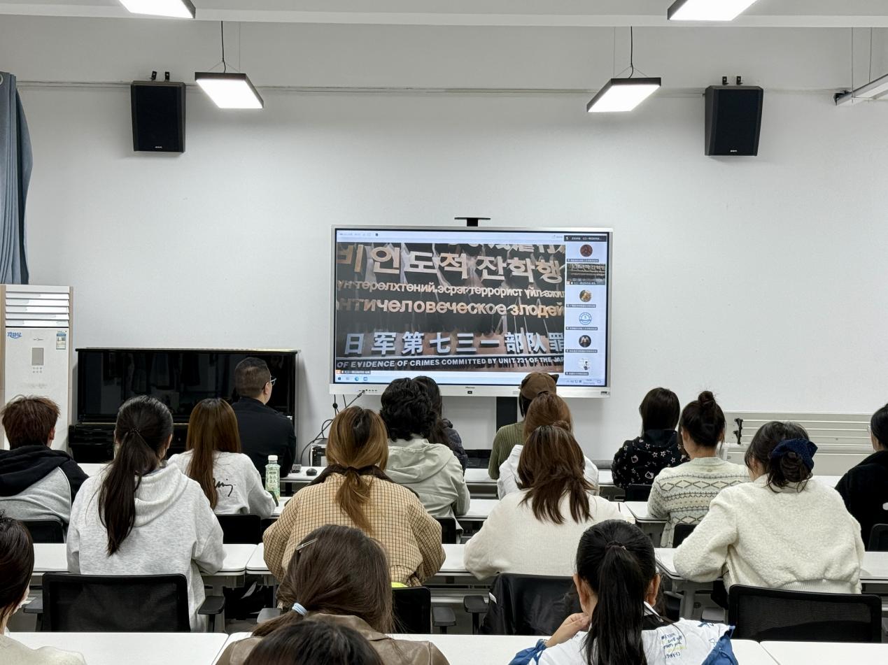 活动中,大家共同在线上参观了侵华日军第七三一部队罪证陈列馆。侵华日军第七三一部队罪证陈列馆作为世界历史上规模最大的细菌武器研究、实验及制造基地,是日本军国主义违背国际公约实施人体实验、细菌战和毒气战的核心罪证,更是其侵略中国、践踏国家主权的铁证。师生通过线上沉浸式视角,跟随讲解员走进序厅,六种语言书写的“反人类暴行”主题墙直击人心;一幅幅触目惊心的照片、一件件承载民族苦难的实物,系统还原了七三一部队的滔天罪行,让全体参与者深刻体悟中华民族曾遭受的深重灾难,真切感受历史背后的国仇家恨与民族伤痛。参观结束后,在主持人倡议下,千余名师生肃立宣誓,铿锵誓言在全国各分会场回响,展现了新时代艺术院校师生的使命担当。