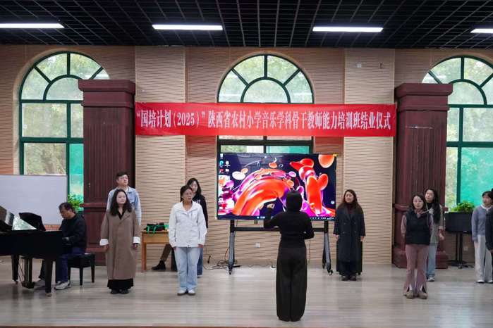 10月22日上午,由我校承办的“国培计划(2025)”——陕西省农村小学音乐学科骨干教师能力提升培训班结业汇报在校学术厅成功举行。经过为期10天的高强度、沉浸式学习,来自全省各地的51名小学音乐骨干教师顺利完成集中培训阶段任务,并以精彩的成果汇报为本次学习画上圆满句号。