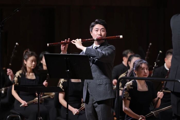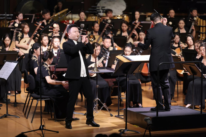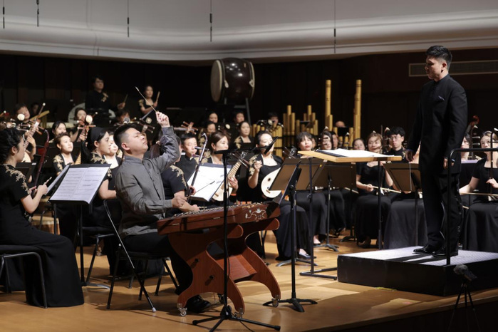 青年作曲家郑飞的《寒山子的诗》创作灵感源自唐代诗僧寒山子的哲思。该作品突出三弦音色的多样化表达方式。三弦与民族管弦乐队的对话,不仅实现了音色层面的共鸣,更在形式上展现了“诗与乐”的互动。作品以极具东方意味的“留白”构思,将诗意的空灵与音乐的流动结合,营造出“以声入禅”的精神空间。