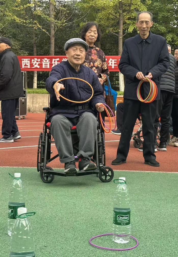 活动当天,学校操场热闹非凡。老同志们精神抖擞地参加各项比赛,如飞镖掷靶区,大家瞄准靶心精准投掷,收获奖品时笑容满面;圆圈套瓶区,老同志们相互鼓励,开心的笑声洒满赛场。活动筹备阶段,离退休干部工作处还提前设置运动器材、检查场地安全,准备饮用热水与急救物资,同时全程配备医护现场服务,志愿者全程协助组织、计分等。老同志们在运动中享受快乐,在互动中增进情谊,展现了老当益壮的精神风貌。