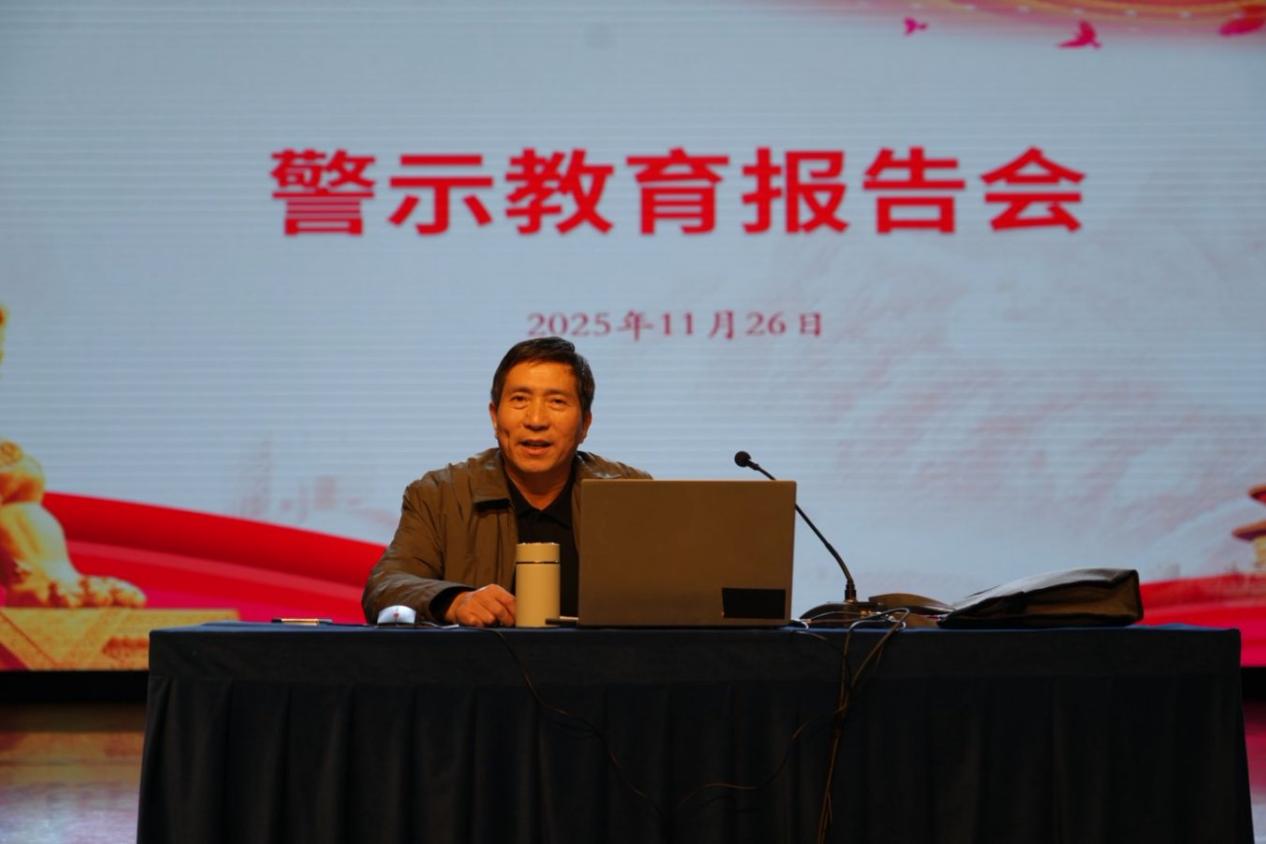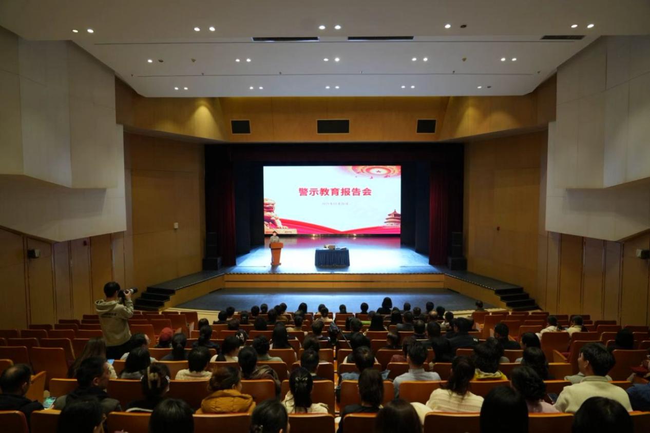 为深入学习贯彻党的二十届四中全会关于持之以恒推进全面从严治党战略部署,锲而不舍落实中央八项规定精神,深刻汲取违纪违法典型案例教训,引导党员干部不断增强廉洁自律意识和拒腐防变能力,2025年11月26日,学校召开警示教育报告会。会议由校党委副书记、纪委书记、监察专员易红彬同志主持。全体校领导、科级以上干部、重点岗位工作人员共约200余人参会。