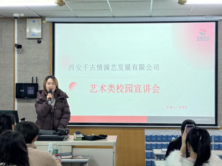 下午,在4-403教室举办了专场宣讲招聘会。宋城演艺集团招聘负责人首先面向舞蹈学院和现代音乐学院2026届毕业生展开宣讲,分别介绍了招聘岗位、薪酬待遇、发展培训、企业文化及招聘流程;《赳赳大秦》演艺集团招聘负责人则围绕舞剧创作、设备环境、薪资待遇及未来发展等内容展开宣讲。随后同学们就岗位实习、合同签订、发展前景等问题踊跃提问,招聘人员逐一解答,现场气氛活跃有序,部分学生现场提交简历并预约面试。