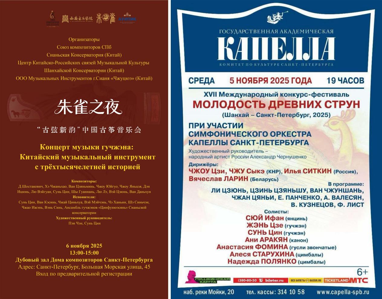“古弦新韵(Молодость древних струн)”多弦民族器乐国际比赛与国际艺术节始于2001年,由圣彼得堡作曲家协会、俄罗斯洲际音乐会联盟、圣彼得堡国立大学、国立模范卡佩拉乐团、莱蒙托夫中心图书馆、圣彼得堡音乐学院等多家单位联合组织,是21世纪影响力最大的民族器乐国际赛事与交流活动。