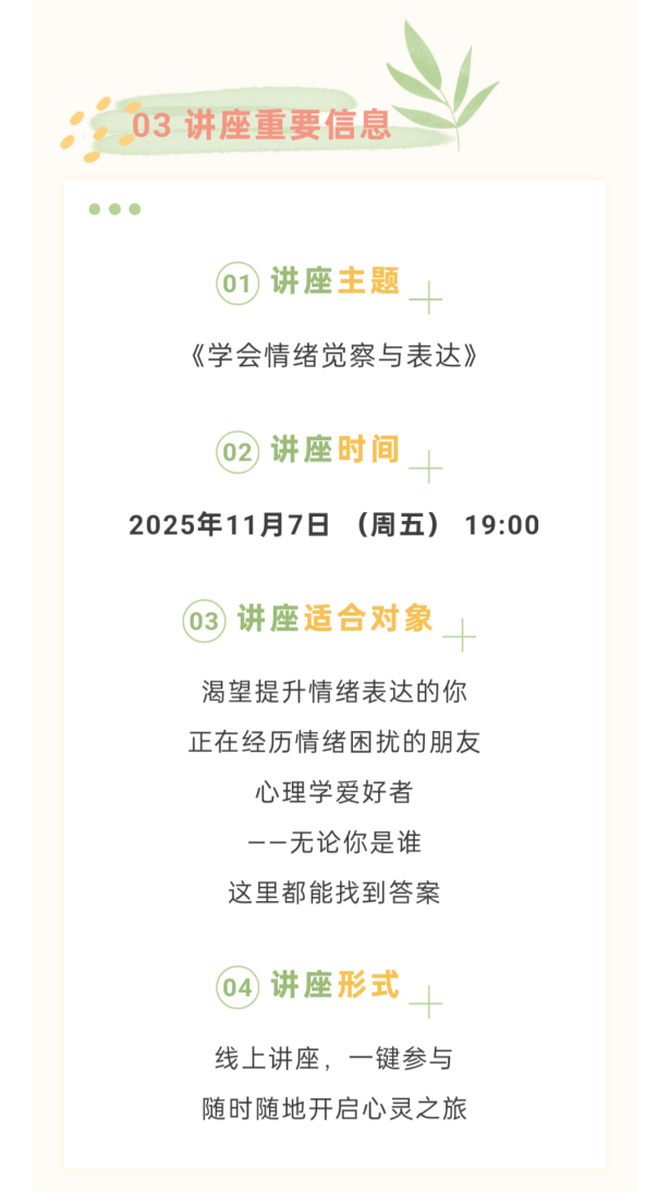 在心理关怀方面,图书馆聚焦师生心理健康。一方面,举办线上讲座“学会情绪察觉与表达”,特邀中国科学院心理研究所专家,从情绪管理到人际关系构建提供专业指导;另一方面,面向考研学生发放“考研暖心大礼包”,缓解备考压力,体现图书馆服务的人性化与温度。
