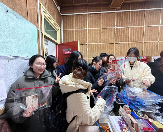 在发放现场,考研同学们有序领取文具包,并纷纷翻开卡片仔细阅读寄语。一位同学表示:“看到老师熟悉的笔迹和温暖的祝福,心里特别踏实,感觉不是一个人在战斗。”
