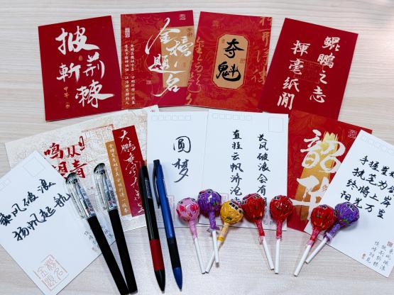 活动筹备过程中,学院师生积极参与卡片寄语书写。老师们写下“笔锋所至,梦想开花”“沉稳应考,静待佳音”等鼓励话语;同学们也通过简短而真挚的文字,传递着同窗之间的支持与陪伴。每一份文具包中的棒棒糖,更寓意着“考试棒棒”,为紧张的备考氛围增添了一抹轻松与甘甜。