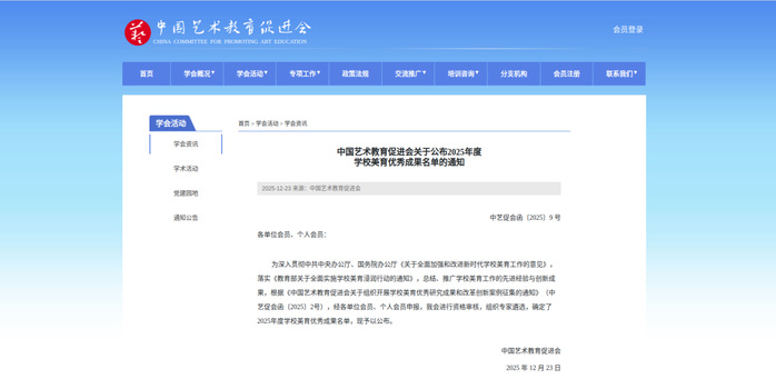 近日,由中国艺术教育促进会举办的学校美育优秀研究成果评选结果正式公布。我校报送的《以乐调风 以美化美:西安音乐学院以艺术美育引领社会美育的探索与实践》获全国优秀创新案例。