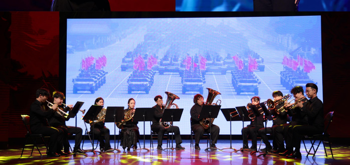 展演围绕“抗战”“英雄”“颂歌”“有我”四大篇章渐次展开,以多元艺术形式生动诠释爱国主义与时代精神。在一首悲壮激昂的男声独唱《松花江上》中,演出正式拉开帷幕。第一篇章“抗战”,通过《游击队之歌》《保卫黄河》等经典作品的声乐、器乐与舞蹈综合呈现,带领观众重温烽火岁月。第二篇章“英雄”,以朗诵《鸭绿江之歌》、歌曲《祖国不会忘记你》及弦乐合奏《我的祖国》深情致敬先烈。第三篇章“颂歌”,通过民乐《战台风》、歌曲《北京颂歌》与《我和我的祖国》等节目,奏响时代奋进旋律。第四篇章“有我”,以《珊瑚颂》、《钢铁洪流进行曲》及民族舞蹈《民族团结一家亲》等表演,彰显青年担当。