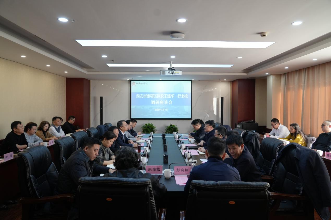 1月7日下午,雁塔区委副书记、区长王建军率区政府相关部门负责同志来我校调研指导,就深化校地合作进行深入交流。我校院长王刚,副院长仲廷虎、侯颉出席会议,相关职能部门负责人参加调研。